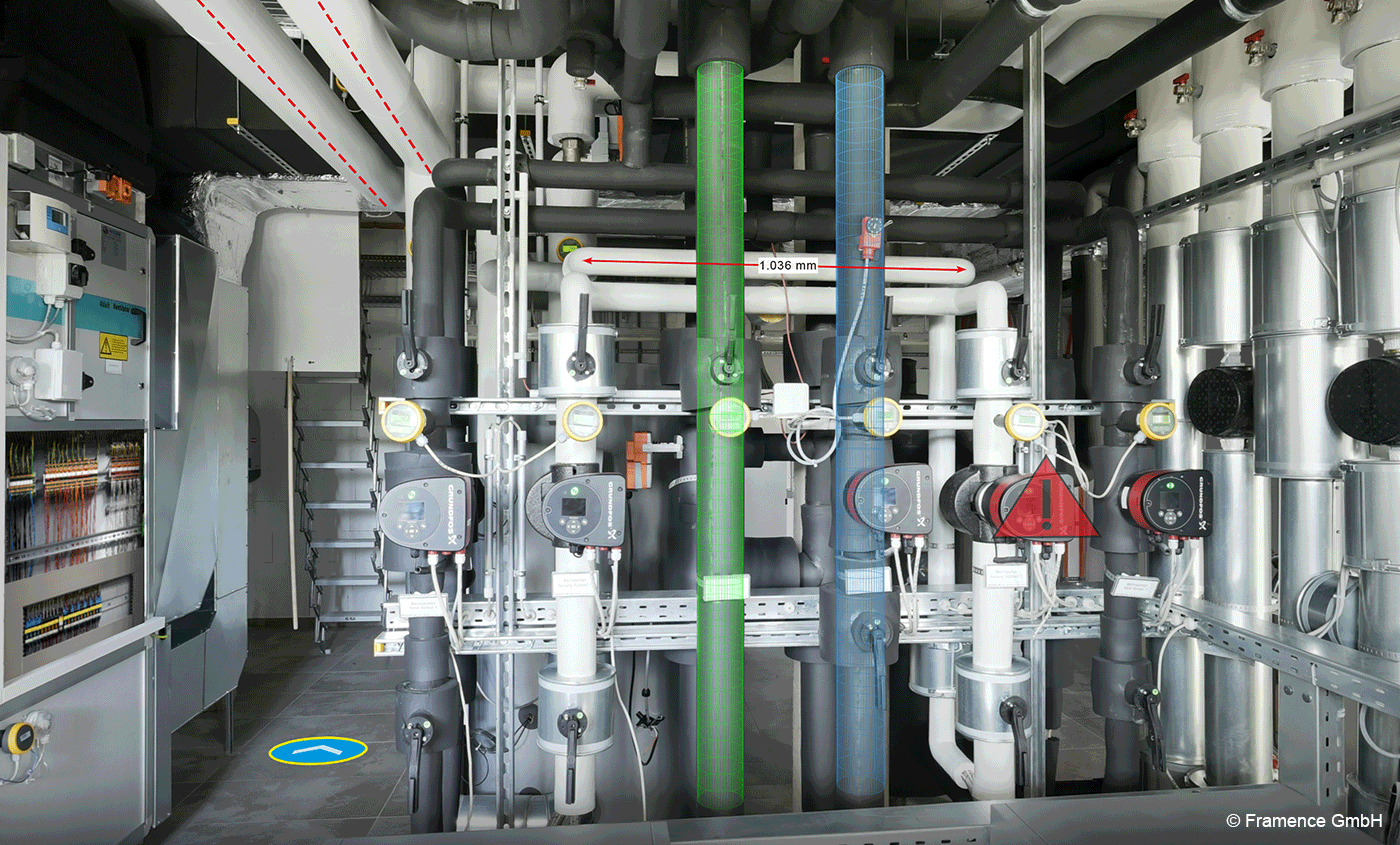 Nowe urządzenia możesz testować cyfrowo, w precyzyjnym środowisku odwzorowującym rzeczywistość — zanim podejmiesz decyzję o zakupie. Łatwo integruj modele 3D w formacie IFC lub STEP i planuj bezpośrednio w modelu opartym na rzeczywistych zdjęciach — lub przenieś je do VR, jeśli trzeba.
