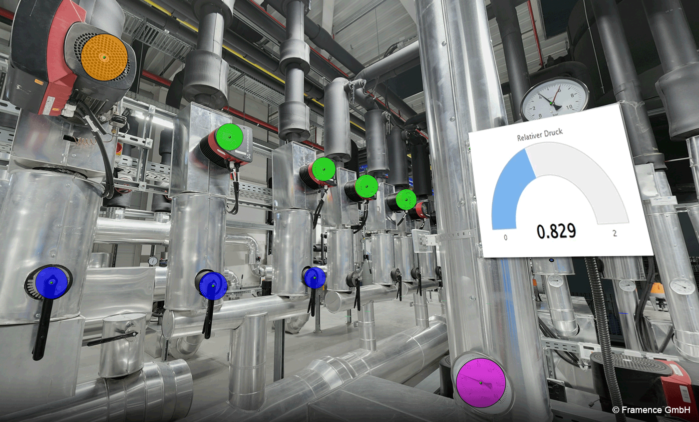 Zobacz dokładnie te dane o zasobie, których potrzebujesz — bez znaczników i skomplikowanych modeli. Dzięki rozpoznawaniu obrazu wspieranemu przez AI system automatycznie określi Twoją lokalizację i nałoży odpowiednie dane z dokładnością do centymetra w rzeczywistości rozszerzonej (AR). Potrzebujesz wsparcia? Współpracuj natychmiast przez czat i udostępnione digital twin.